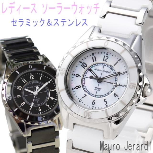 腕時計 レディース腕時計 ソーラー セラミック&ステンレス 電池交換不要 3気圧 防水 マウロジェラルディ MJ-042 ウォッチ クリスタル プレゼント エコ