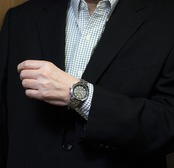 ゴージャスなグレーの文字盤とシルバーのベルトが、まさにおしゃれな腕元を演出します。