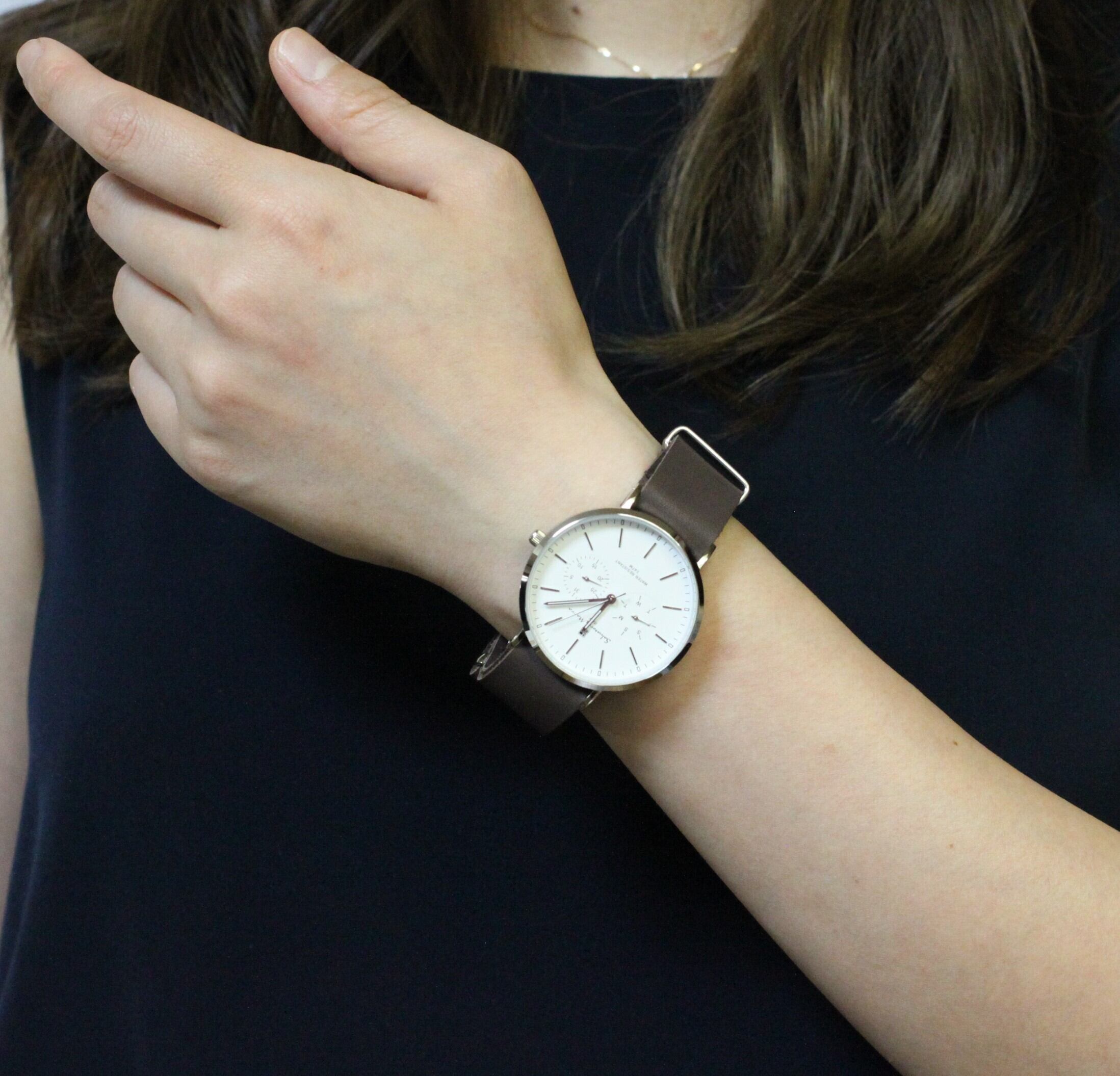 オンラインショップへようこそ!柔らかく優れたソフトレザーで作られたユニセックスモデルの腕時計、サルバトーレマーラのご紹介です。どんなシーンでもおしゃれに合わせられるデザインで、メンズ・レディース問わずにご利用いただけます。日付けとカレンダー機能も搭載し、ビジネスシーンにもぴったり!
