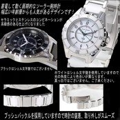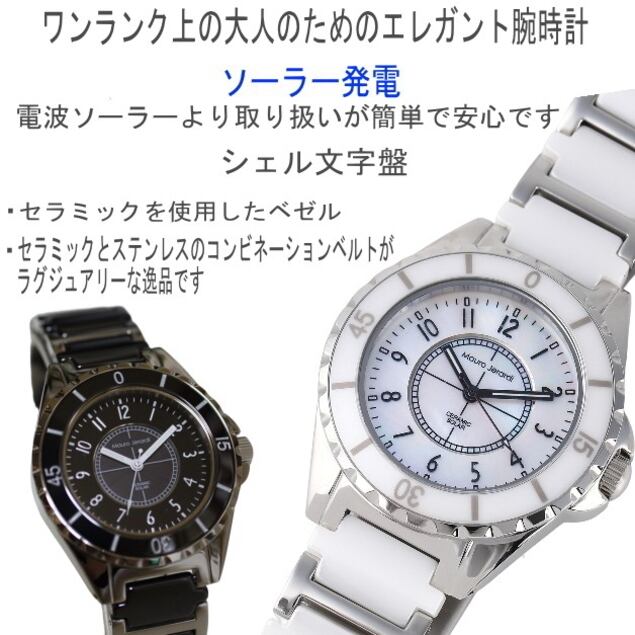 セラミックとステンレスを組み合わせたレディースソーラーウォッチは、エレガントで洗練されたデザインが特徴です。シャンパンゴールドのダイヤルに輝くクリスタルが、華やかさを引き立てます。